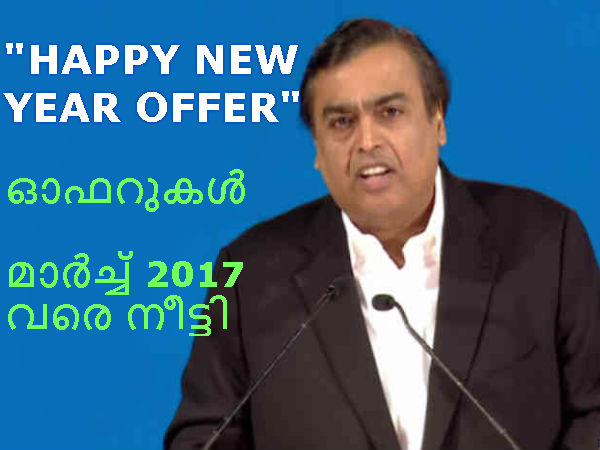 'ജിയോ ഹാപ്പി ന്യൂ ഇയര് ഓഫര്' സൗജന്യ ഓഫറുകള് മാര്ച്ച് 2017 വരെ നീട്ടി!