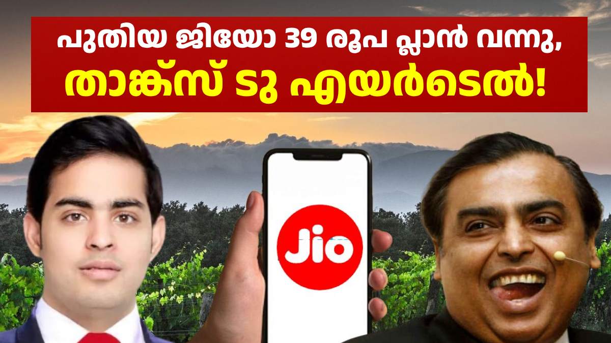 ഇന്ത്യയിലെ ഏറ്റവും വലിയ ടെലിക്കോം കമ്പനിയായ റിലയൻസ് ജിയോ തങ്ങളുടെ വരിക്കാർക്കായി 39 രൂപയുടെ പുതിയ പ്രീപെയ്ഡ് ഡാറ്റ പ്ലാൻ അവതരിപ്പിച്ചിരിക്കുന്നു (Reliance Jio launches Rs 39 data plan). പലവിധ സാഹചര്യങ്ങൾ മൂലം ജിയോ ഡാറ്റ പ്ലാനുകൾ ആശ്രയിക്കുന്നവർക്ക് ഏറെ ഉപകാരപ്പെടുന്ന വിധത്തിലാണ് ഈ പുതിയ പ്ലാൻ എത്തിയിരിക്കുന്നത്. നിലവിലുള്ള ജിയോ ഡാറ്റ പ്ലാനുകളെ വച്ച് നോക്കുമ്പോൾ തികച്ചും ലാഭകരമായ ഒരു പുതിയ റീച്ചാർജ് ഓപ്ഷൻ ജിയോ വരിക്കാർക്ക് ലഭ്യമായിരിക്കുന്നു എന്നുപറയാം. എന്നാൽ ഈ പുതിയ ജിയോ പ്ലാൻ കിട്ടിയതിന് യഥാർഥത്തിൽ നന്ദി പറയേണ്ടത് എയർടലിനോട് ആണ്.