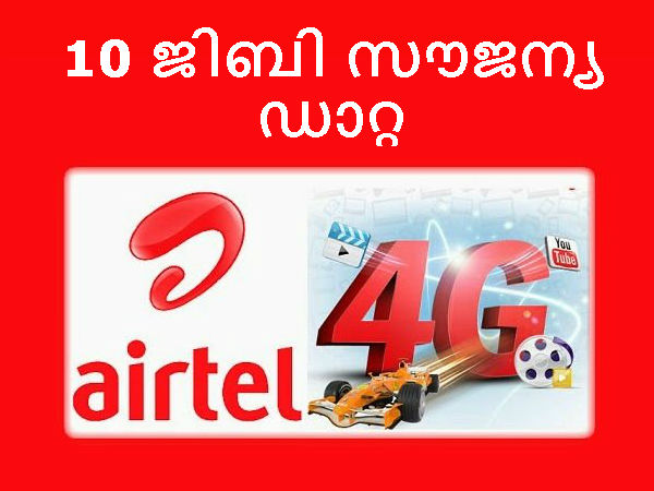 ഞെട്ടിക്കുന്ന ഓഫര്: 10 ജിബി സൗജന്യ 4ജി ഡാറ്റയുമായി എയര്ടെല്!