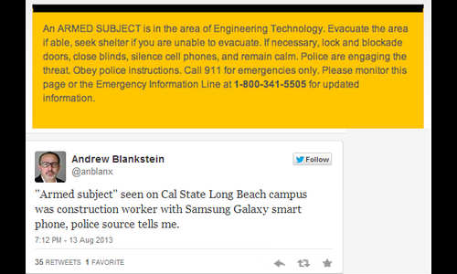 കഴിഞ്ഞദിവസം കാലിഫോര്ണിയ സ്റ്റേറ്റ് യൂണിവേഴ്സിറ്റിയിലെ വിദ്യാര്ഥികള്ക്ക് ഒരു സന്ദേശം ലഭിച്ചു. കാംപസില് ഒരു തോക്കുധാരി കടന്നിട്ടുണ്ടെന്നും എല്ലാവരും ഉടന് കാംപസില് നിന്ന് പുറത്തുകടക്കണമെന്നുമായിരുന്നു സന്ദേശം.