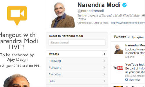 ട്വിറ്ററില് ഏറ്റവും കൂടുതല് ഫോളോവേഴ്സുള്ള ഇന്ത്യന് രാഷ്ട്രീയ നേതാക്കളില് ഒന്നാമന് ഗുജറാത്ത് മുഖ്യമന്ത്രി നരേന്ദ്രമോഡിയാണ്. കേന്ദ്രമന്ത്രി ശശി തരൂരിനെ മറികടന്നാണ് അദ്ദേഹം നേട്ടം സ്വന്തമാക്കിയത്. 21,67,541 പേരാണ് മോഡിയെ ട്വിറ്ററില് പിന്തുടരുന്നത്. തൊട്ടു പിന്നിലുള്ള തരൂരിന് 18,77,710 ഫോളോവേഴ്സാണുള്ളത്.