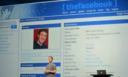2011 -ല് നടന്ന ഒരു പ്രസന്റേഷനില് 2005-ലെ തന്റെ ഫേസ്ബുക് പ്രൊഫൈല് കാണിക്കുന്നു.
