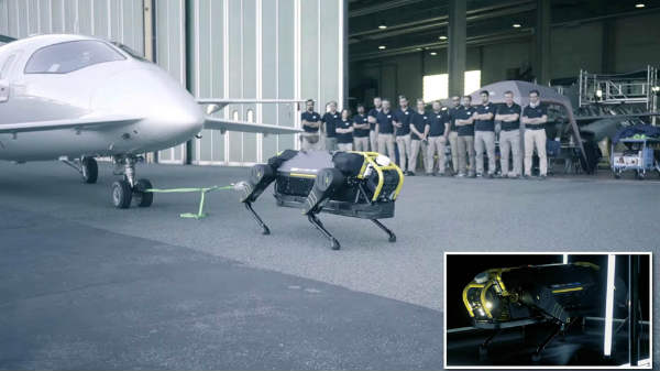 3 ടണ് ഭാരമുള്ള വിമാനം കെട്ടിവലിച്ച് റോബോട്ട് ഡോഗ്