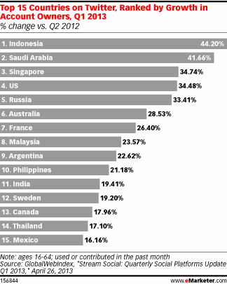ഇനി 2012 ലെ ചില കണക്കുകള് ഒന്നുക്കൂടി ശ്രദ്ധിക്കു. ഏറ്റവും മുന്പില് നില്ക്കുന്നത് ഇന്ത്യോന്യേഷ്യയാണെങ്കില്, രണ്ടാമത് സൗദിഅറേബ്യയാണ് (41.6%), മൂന്നാം സ്ഥാനത്ത് സിംഗപൂരുമാണ് (34.7%) യു എസ്നു നാലാം സ്ഥാനനമാണ് (34.4%)2012 ഉണ്ടായിരുന്നത്. ഇന്ത്യക്ക് 11ാം സ്ഥാനവുമായിരുന്നു (19.4%). എന്നാല് ഇന്ന് മുന്പത്തേക്കാളും ആളുകള് ട്വിറ്റര് ഉപയോഗിച്ചുവരുന്നു