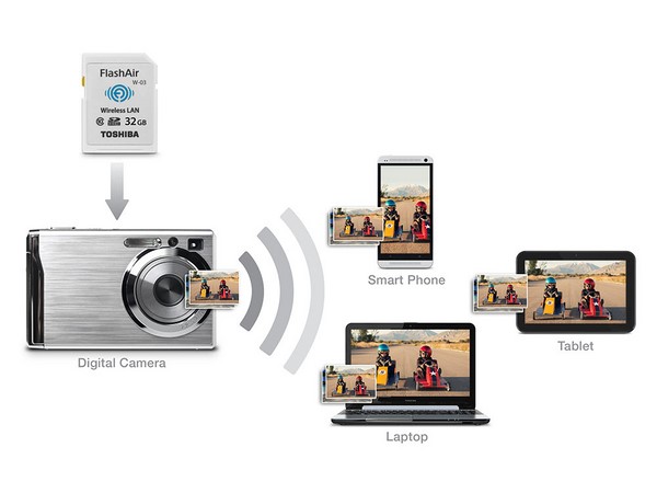 തോഷിബ അവതരിപ്പിച്ച മൂന്നാം തലമുറ ഫ്ളാഷ് എയര് 3 വയര്ലെസ് എസ്ഡി കാര്ഡില് ഡാറ്റ കൈമാറുന്നതിനായി ലാപ്ടോപിലേക്കും സ്മാര്ട്ട്ഫോണിലേക്കും കണക്ടു ചെയ്യുന്നതിനുള്ള ലോക്കല് നെറ്റ്വര്ക്ക് ആക്സസ്സ് പോയിന്റ് മെമ്മറി കാര്ഡില് തന്നെ ഉള്ക്കൊളളിച്ചിരിക്കുന്നു. ഇതുപയോഗിച്ച് ഡാറ്റ അനായാസം കൈമാറ്റം ചെയ്യാവുന്നതാണ്.