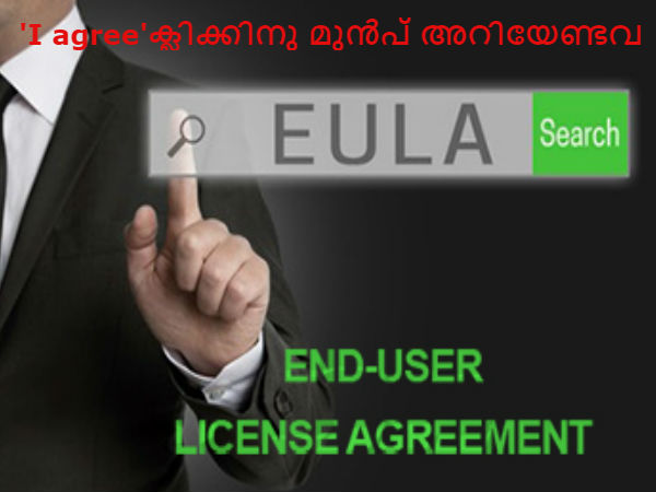 കമ്പ്യൂട്ടര് ഉപയോഗിക്കുന്ന വ്യക്തികളില് പലര്ക്കും പരിചിതമായ ഓപ്ഷനുകളില് ഒന്നാണ് സോഫ്റ്റുവയര് ഇന്സ്റ്റലേഷന്റെ സമയത്ത് ആ സോഫ്റ്റുവയറിന്റെ ഇന്സ്റ്റലേഷനുമായി ബന്ധപ്പെട്ട നിബന്ധനകള് എത്തിച്ചേരുന്ന സ്ക്രീന്. ഇതിനെയാണ് എന്റ് യൂസര് ലൈസന്സ് എഗ്രിമെന്റ്.
