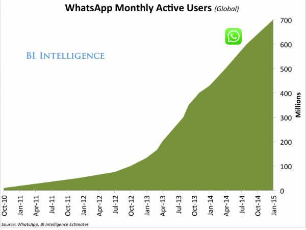 എല്ലാ മാസവും 70 കോടി ആളുകളാണ് വാട്ട്സ്ആപ് ഉപയോഗിക്കുന്നതെന്ന് സിഇഒ ജേന് കോം അറിയിച്ചു. ആഗസ്റ്റ് വരെ ഈ കണക്ക് 60 കോടിയായിരുന്നത് കഴിഞ്ഞ 4 മാസങ്ങള്ക്കിടയില് 10 കോടിയായി ഉയരുകയായിരുന്നു.