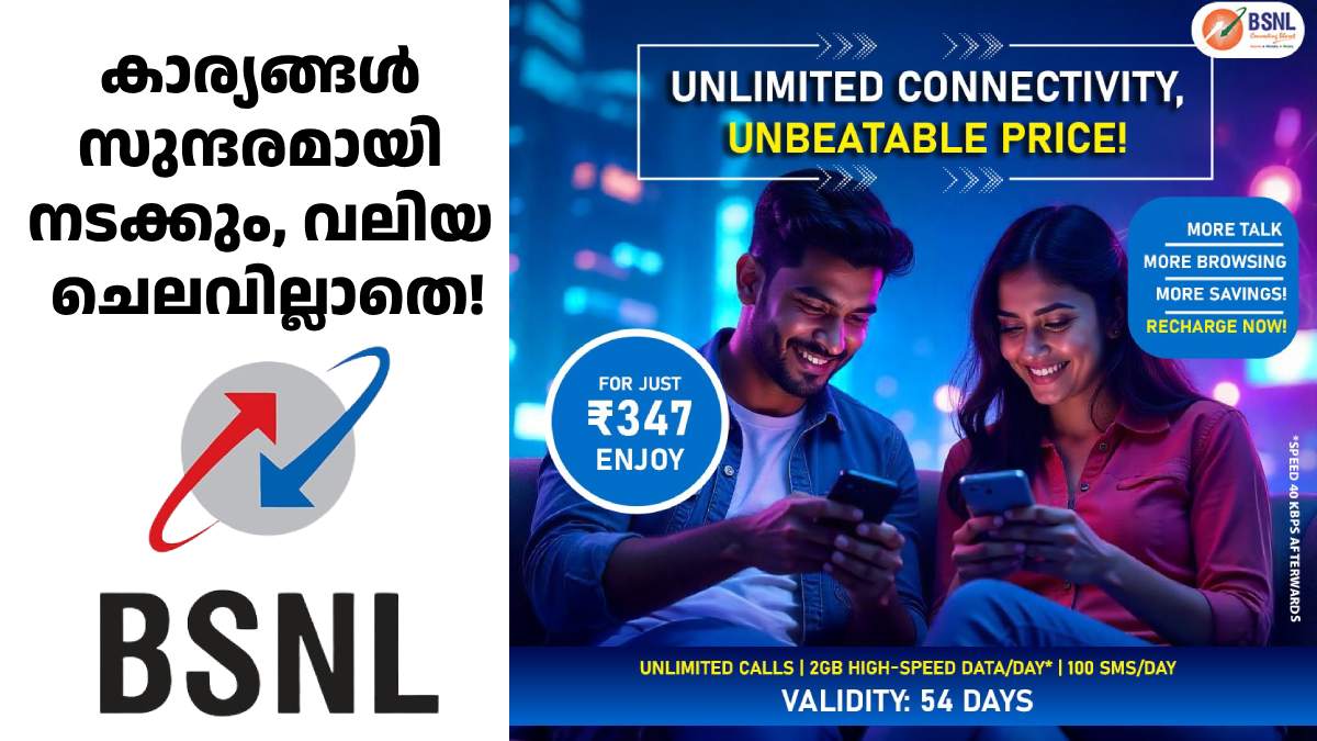 സാധാരണക്കാരായ ഉപയോക്താക്കളുടെ ആഗ്രഹം വലിയ ചെലവൊന്നുമില്ലാതെ ടെലിക്കോം സേവനങ്ങൾ ലഭ്യമാകണം എന്നാണ്. ഡാറ്റയും കോളിങ്ങുമൊക്കെ ആവശ്യത്തിന് ലഭ്യമാകുന്നതും എന്നാൽ താങ്ങാനാകുന്ന വിലയിൽ ഉള്ളതുമായ ഒരു പ്ലാൻ. അങ്ങനെയൊരു പ്ലാൻ തേടുന്നവർ തീർച്ചയായും പരിചയപ്പെട്ടിരിക്കേണ്ട ഒന്നാണ് 347 രൂപയുടെ ബിഎസ്എൻഎൽ പ്രീപെയ്ഡ് പ്ലാൻ. അതിനാൽത്തന്നെയാകാം, ബിഎസ്എൻഎൽ തങ്ങളുടെ ട്വിറ്റർ (ഇപ്പോൾ എക്സ്) പേജിലൂടെ 347 രൂപയുടെ പ്ലാനിനെ പരിചയപ്പെടുത്തി വീണ്ടും രംഗത്തെത്തിയിട്ടുണ്ട്. ഏറെ നാളായി ബിഎസ്എൻഎൽ നൽകിവരുന്ന ഒരു റീച്ചാർജ് ഓപ്ഷനാണ് ഇത്. 54 ദിവസ വാലിഡിറ്റിയിലാണ് ഈ പ്ലാനിലെ സേവനങ്ങൾ ലഭ്യമാകുക.