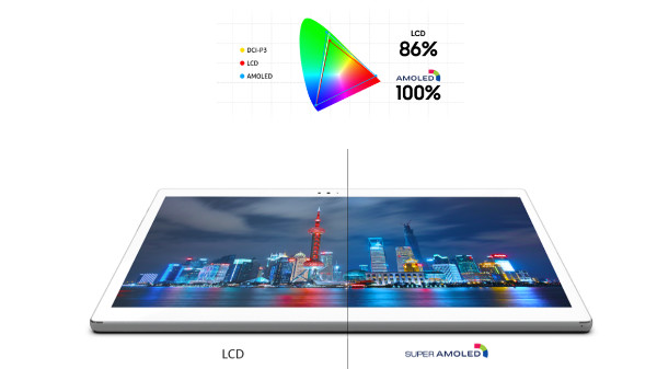 6.9 മില്ലീമിറ്റര് മാത്രം കനമുള്ള ടാബ്ലറ്റിന്റെ സ്ക്രീനിന്റെ വലുപ്പം 10.5 ഇഞ്ചാണ്. 2560X1600 പിക്സല് (2K) റെസല്യൂഷന് ദൃശ്യമികവ് ഉറപ്പുനല്കുന്നു. എല്സിഡി സ്ക്രീനുകളെ അപേക്ഷിച്ച് പകുതി പ്രകാശം മാത്രമാണ് സൂപ്പര് AMOLED സ്ക്രീനുകള് പുറത്തുവിടുന്നത്. അതുകൊണ്ട് തന്നെ കണ്ണുകള്ക്ക് അസ്വസ്ഥത ഉണ്ടാകില്ല.
